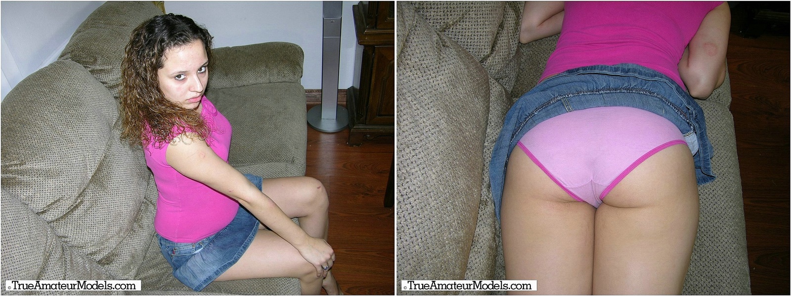 This amateur babe works in a department store, and as soon as saw her, I went right over to her to strike up a conversation, hoping that she would become one of my models! And of course, as you can see ...she did indeed decide to become one of my models! The particular photos in this gallery are smaller than the vast majority of the other photos that I shoot, and she only has 1 gallery with the smaller photos. All of the other photos are sized at 1600x1200. Hope you all enjoy these pictures of Cassandra spreading her hairy pussy, as well as exposing her sweet ass while looking over her shoulder!
